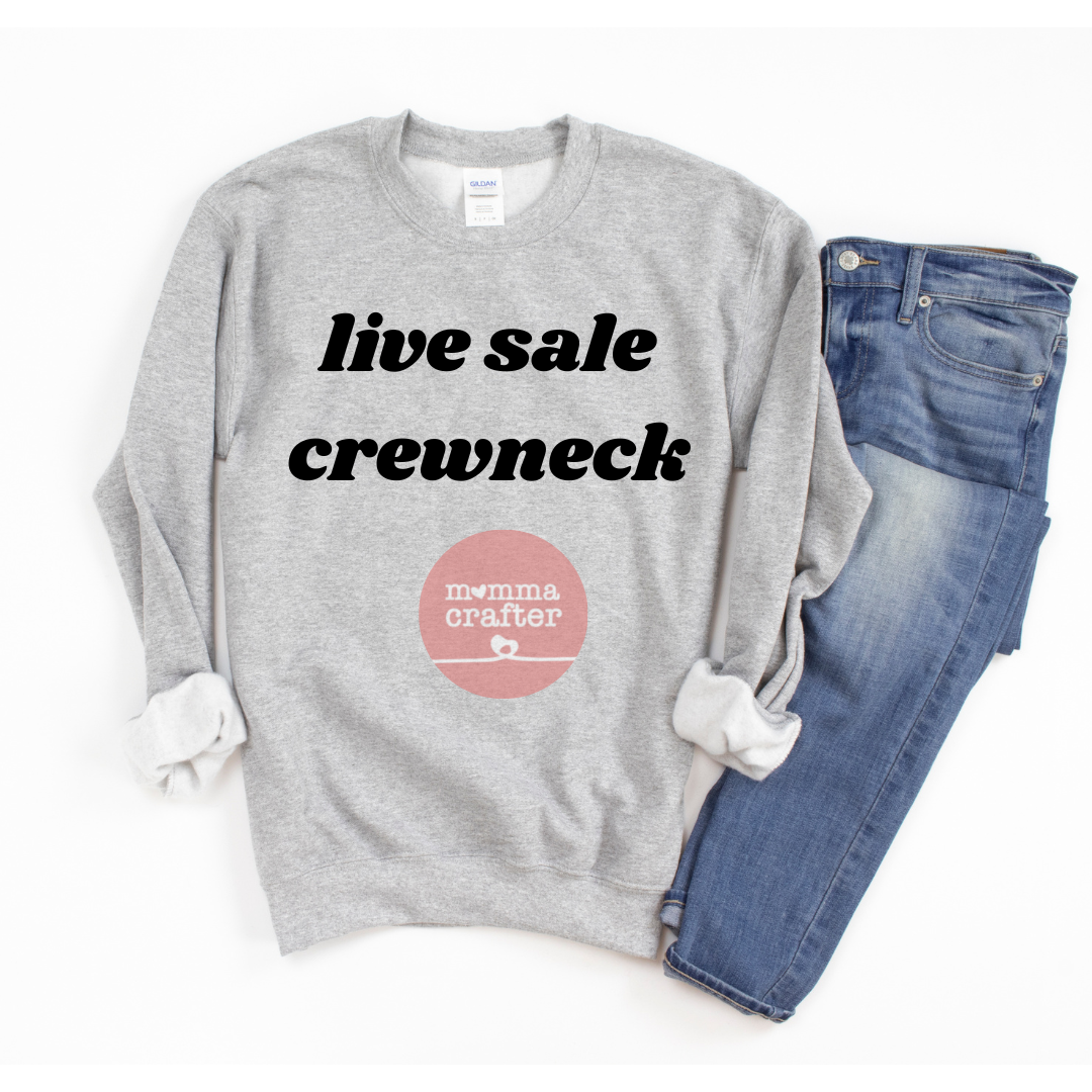 This listing is for a Tik Tok Live Sale -Crewneck. You pick your size and pick your design & color on the Live. So many designs to chose from! Please add comments at checkout for category of design (ie, Mom, Christmas, Fall, Good Vibes, SmallBusiness, Kids, Sarcastic, Men, Inspirational).